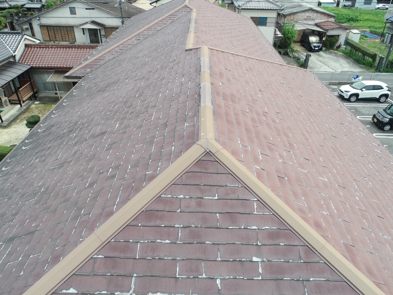 岐南町の戸建住宅で金属屋根材でのカバー工事を行いました。カバー工事完了までの工程は以下の記事で紹介しています。>>岐南町で層間剥離でボロボロのパミール屋根を点検、苔も生え下地も見えていた>>岐南町でパミール屋根のカバー工事のため下地処理を行い防水シートを貼…